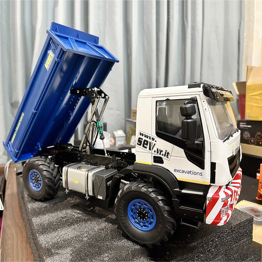 Iveco RC Hydraulic Dump Truck 4X4 1/14 with Light and Sound System Full Drive High Torque Remote Control Truck Metal Model Toy