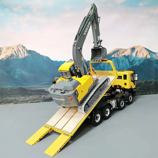 Iveco RC Car 8x4 8x8 1/14 Hydraulic Flatbed Trailer Wrecker Metal Model Rc Car EC160 Electric Excavator Rc Cars for Adults Toys