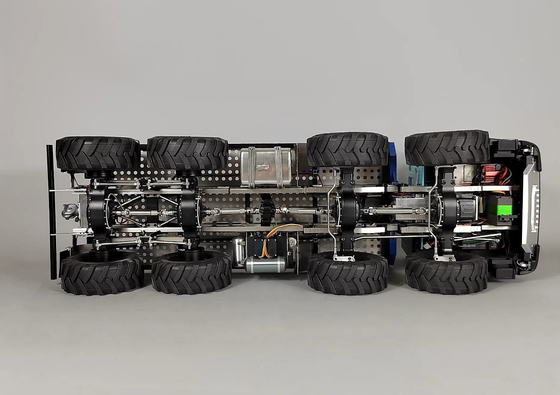 The chassis adopts 8x8CNC differential lock axle set, 2-speed gearbox;