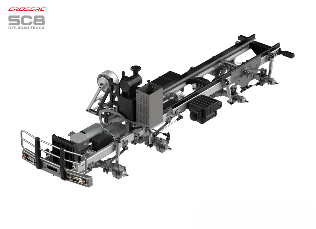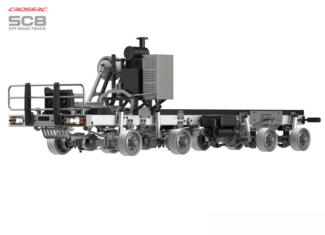 The SC8 represents the pinnacle of CROSSRC's heavy truck series. Evolving from a 6x6 to an 8x8 full-time all-wheel drive system, it offers a transformative leap in terrain conquest and load capacity. Inspired by classic off-road heavy trucks, it is engineered to deliver the most hardcore mechanical control experience for enthusiasts.