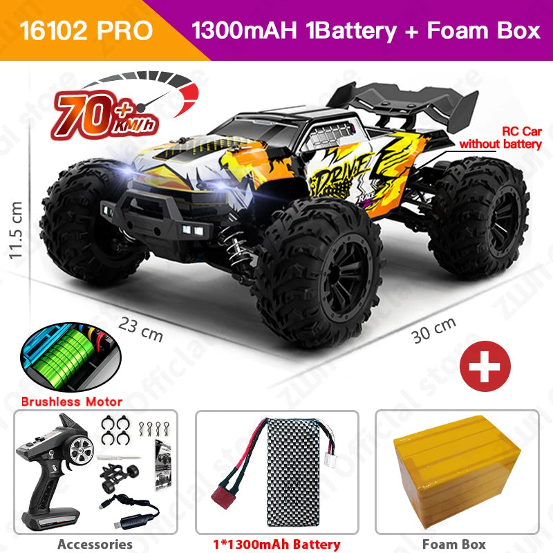 ZWN 1:16 70KM/H 4WD RC Car With LED Headlight Remote Control Cars High Speed Drift Monster Truck for Kids vs Wltoys 144001 Toys